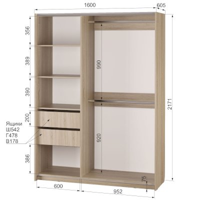 | Наполнение шкафа | выдвижные ящики / штанга |