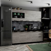 Стильная кухня, выполненная в модном декоре "бетон пайн", удачно вписывается в городской индустриальный стиль и выглядит очень необычно и оригинально. Отличительная черта цвета в сочетании светлой бетонной поверхности, визуально расширяющей пространство, и состаренной древесины. Кухня с лёгкостью впишется в любой эклектичный интерьер. Красивое решение по лучшей цене — это кухня Сканди 2,0 м комплектация 1.