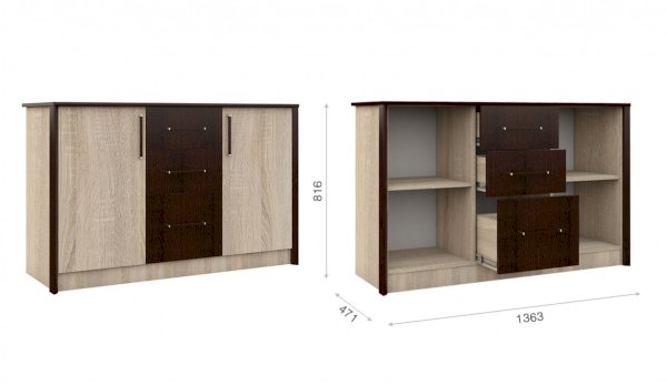 Наполнение: выдвижные ящики + шкафы с распашными дверцами (внутри по 1 полке)