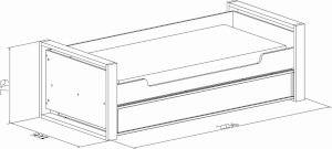 Детская или подростковая кровать-тахта с большим ящиком глубиной 182 мм на выкатных роликах. Его можно использовать как место для хранения постельного белья или как дополнительное спальное место для незапланированных гостей. Для полноценного спального места достаточно убрать разделитель и положить матрас. Размер матраса для основного спального места 190х90 см. Размер матраса для дополнительного спального места: 190х80 см, высотой до 18 см. Дополнительные боковые ниши в кровати помогут подростку держать под рукой необходимые перед сном вещи. Бонусом для современных детей станет компактная встроенная в кровать USB зарядка для телефонов и планшетов.