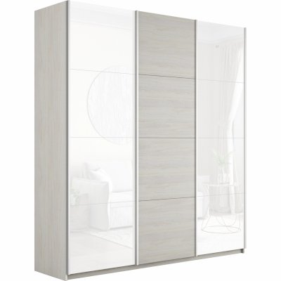 Шкаф-купе 3-х дверный Прайм Белое стекло/ДСП/Белое стекло 1800х2300х570 мм Ясень Анкор Светлый
