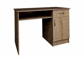 Стол письменный №2 идеально подходит для школьников, студентов, офисных служащих и работников умственного труда. Помимо рабочей поверхности модель оборудована вместительной тумбой, в которую входят скрытое за распашной дверцей отделение и один выдвижной ящик. Мебель надежна и долговечна. Она изготовлена из ламинированной ДСП, имитирующей оттенок и текстуру ясеня шимо светлого.