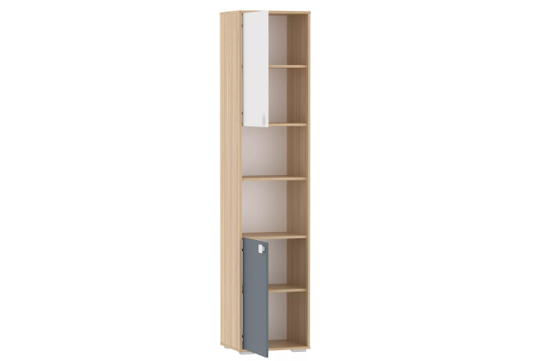 Шкаф не займет много места в детской комнате. Компактная, но очень вместительная модель шкафа с комбинацией открытых и закрытых систем хранения позволит удобно расположить книги, школьные принадлежности и игрушки. Высота полок фиксирована. Шкаф-пенал является модульным, что позволяет комбинировать его с другими предметами коллекции. Возможна право- и левостороння сборка.