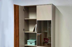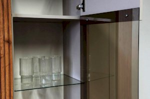 Вторая дверь, выполненная со стеклянной вставкой, позволяет демонстрировать коллекции, декоративные предметы или книги, придавая вашему пространству дополнительный шарм и элегантность.