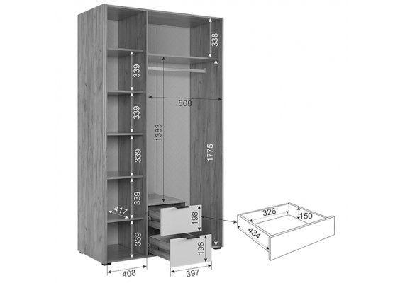 Наполнение шкафа выдвижные ящики / штанга