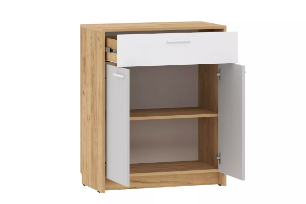 Тумба из коллекции НОРТОН выполнена в светлых оттенках, что визуально расширяет комнату, а контрастные тоны фасада придают помещению выразительность. Тумба представлена в двух цветах на выбор – Дуб Крафт Табачный и Дуб Крафт Золотой.