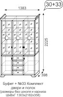 Буфет может быть дополнен комплект дверей и полок в центральную секцию.